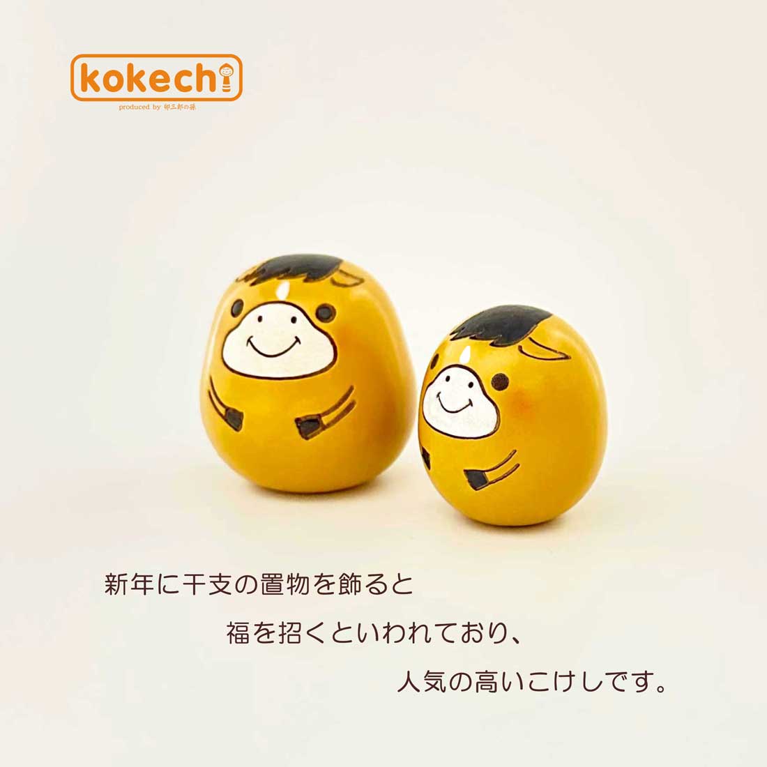 | キュートな2匹の馬(うま)さんが新しい年を温かく見守ります。新年に干支の置物を飾ると福を招くといわれており、人気の高いアイテムです。 こども目線を重視して、小さなお子さまから大人まで楽しめるこけしを。卯三郎の孫が作るこけしはどれも手のひらに収まるほどコンパクトでかわいいサイズです。小さい子供でも手に取れて木の温もりを感じる、日本の伝統に触れる。そんな光景を想像しながら一つひとつ丁寧に手作りしています。お部屋のインテリアに自然ととけこむkokechi。大切な方への贈り物・ギフトにもご利用いただいています。 |
