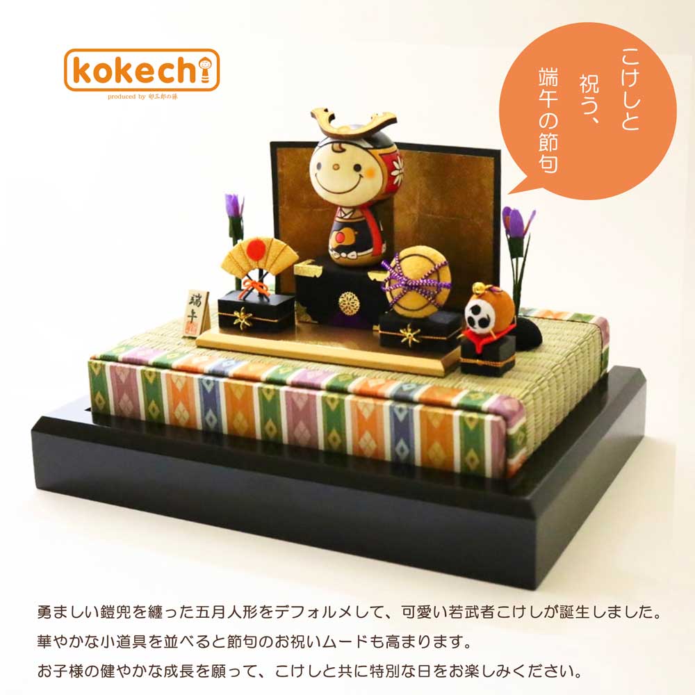若武者 こけし 【 豪華 飾り台 フルセット】 端午の節句 五月人形 コンパクト おしゃれ 木製 5月人形 こどもの日 インテリア 兜 モダン 鎧兜 鎧飾り 子供大将 子供の日 プレゼント ギフト 日本製 伝統工芸品 おうち時間 願い 暮らし stayhome 癒し 置物 グッズ 贈り物 | ギフト,こどもの日・端午の節句 | こけし屋 『卯三郎の孫』